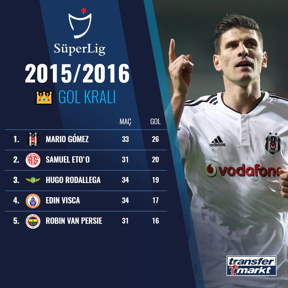 Transfermarkt Com Tr On Twitter Super Lig 2015 2016 Sezonunun Gol Krali Listesinde Mario Gomez 33 Macta 26 Gol Ile O Sezonun Gol Krali Oldu Superlig Besiktas Mariogomez Transfermarkt Mario Gomez
